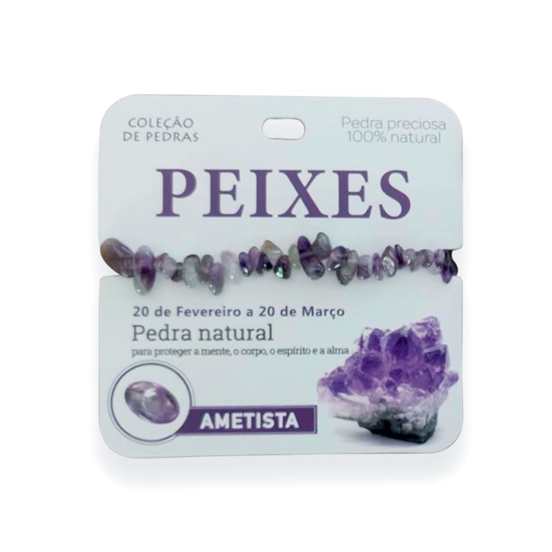 Pulseira signo Peixe, pedra amtista, 100% pedra natural